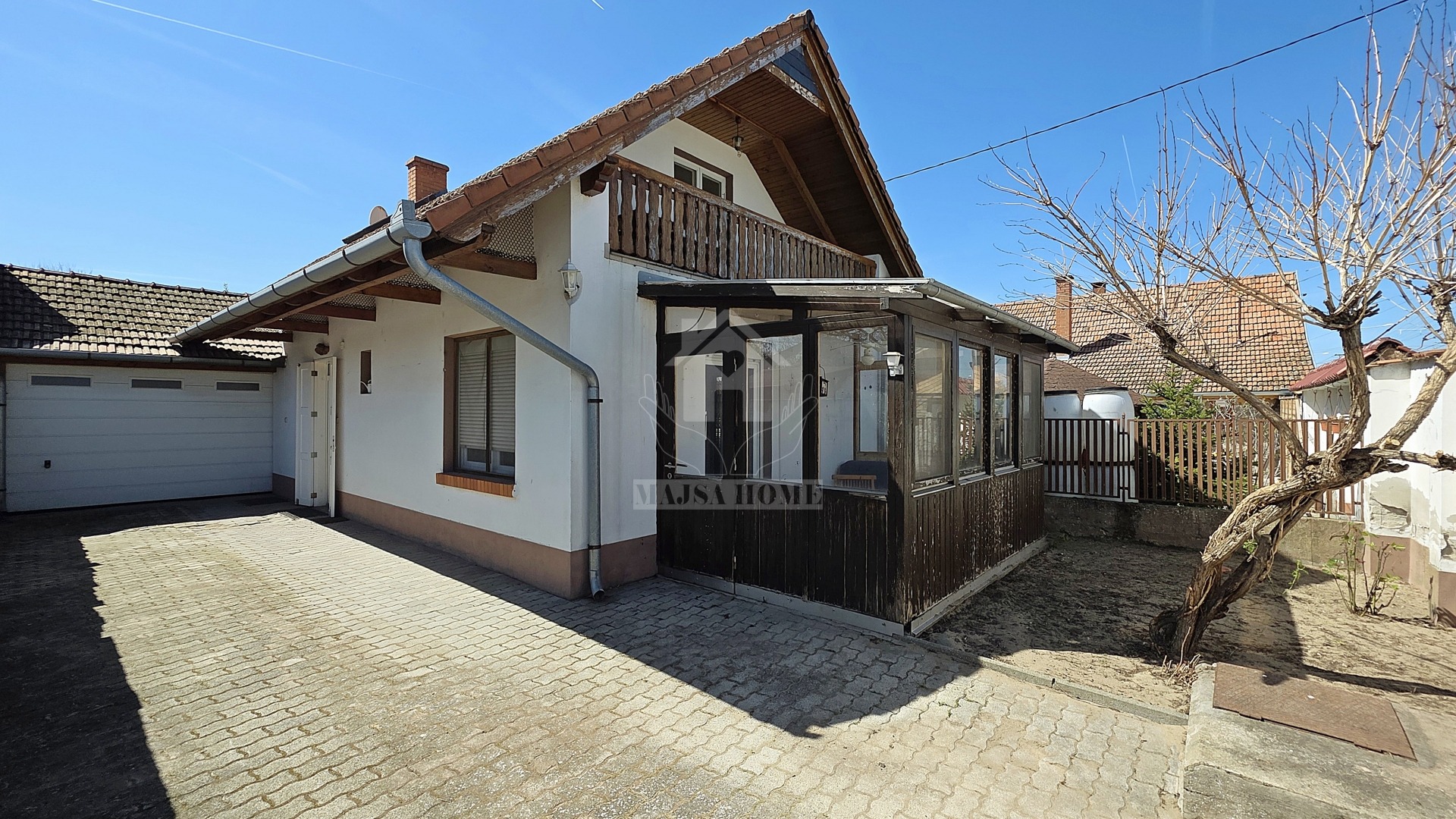 Bács-Kiskun megyében, Kiskunmajsán a Fő utca 189. szám alatt eladó egy 1998-ban épült kétszintes, tégla falazatú előkertes családi ház garázzsal és 352 m2 telekterülettel.