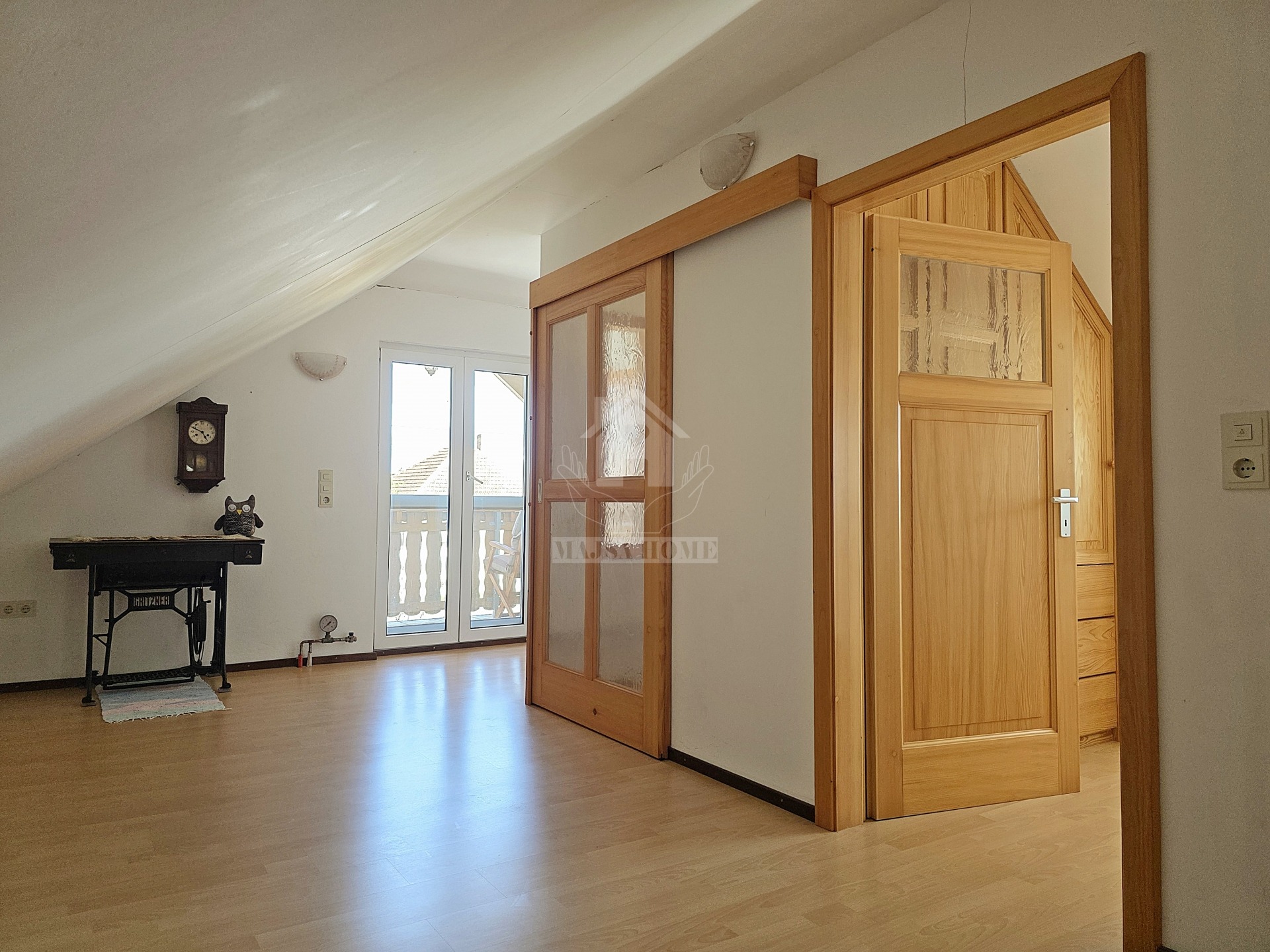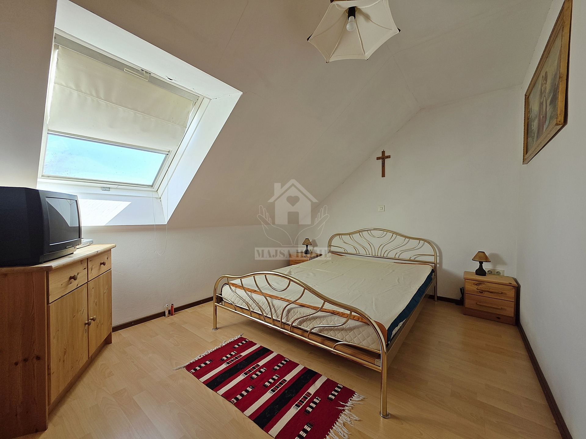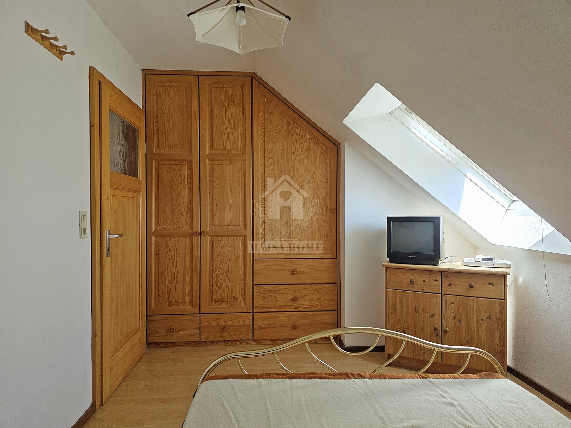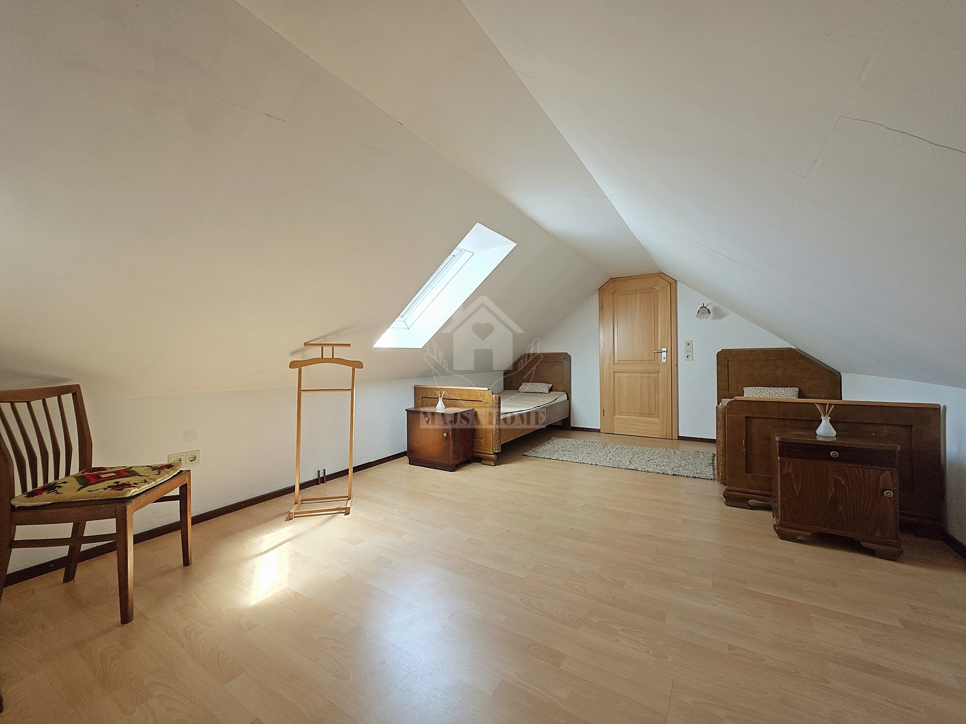 A 60 m2-es tetőtéri részben 2 hálószoba, előtér, loggia, gardróbszoba, és egy félkész helyiség található.